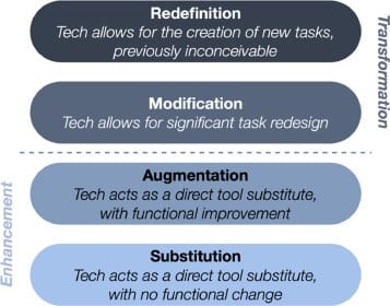 Illustration from “A scoping review of the application of the SAMR model in research” https://doi.org/10.1016/j.caeo.2022.100093